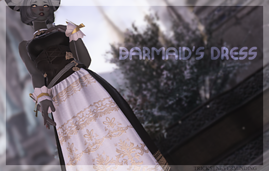❈ Description: Pairs an edited Hyuran Chemisette with the Dirndl's Long Skirt for all Tall Female Races. Comes with two customized colourset options. "Full" dyes the main dress fabric + corset. The alternate dyes only the main dress fabric. Gold accents and white fabric remains undyeable. Feel free to edit the colourset to your liking!