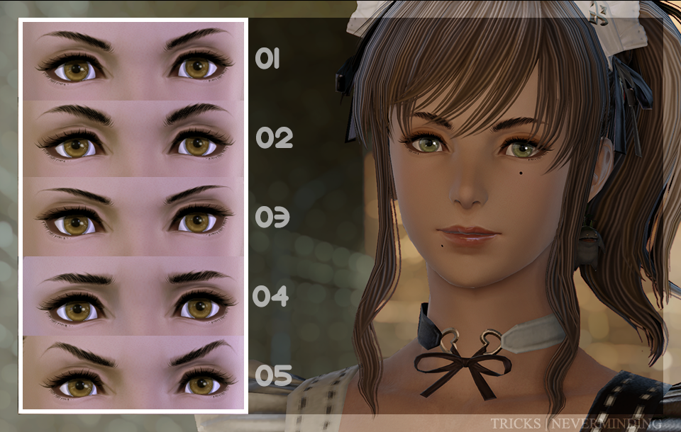 DISCLAIMER: Files come in .DDS format and must be manually installed using TexTools. Intended for use with Vanilla Meshes ONLY! Not reliable on sculpts which edit default Brow/Lash UVs. If the sculpt uses unedited Vanilla UV Maps for Brows and Lashes, it should work decently.